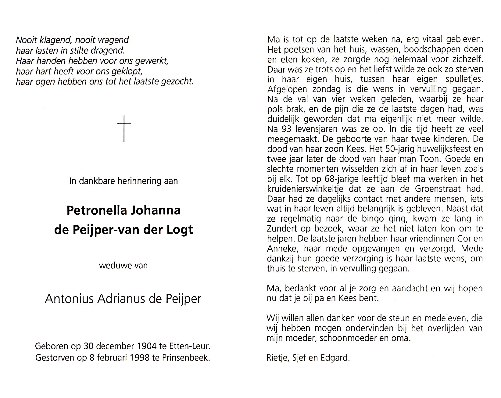 Petronella Johanna van der Logt Antonius Adrianus de Peijper